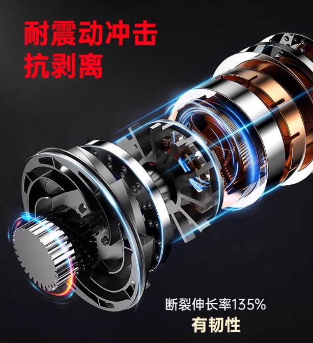 最终形成的胶层,具有高韧性、耐冲击、耐老化等特性,满足电机对粘接部位的高要求。